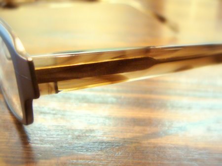 洋服も合わせやすい万能な茶色のカラー。テンプルの透け感もきれいです。