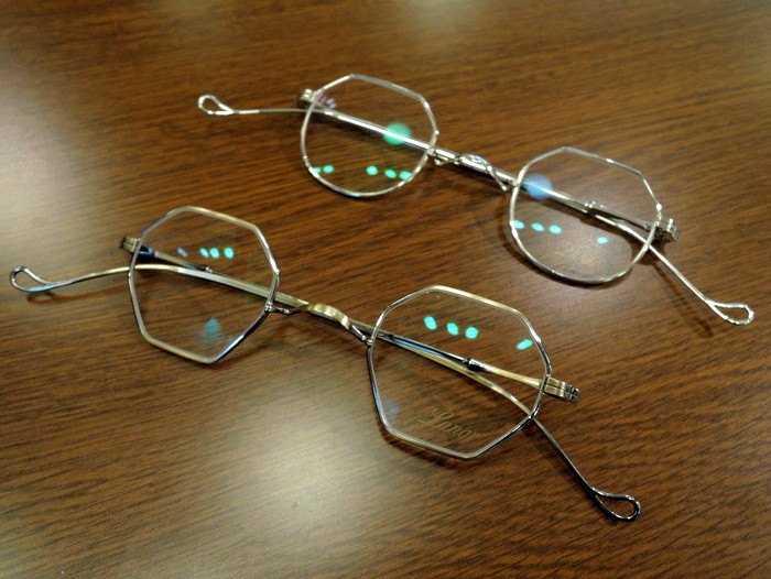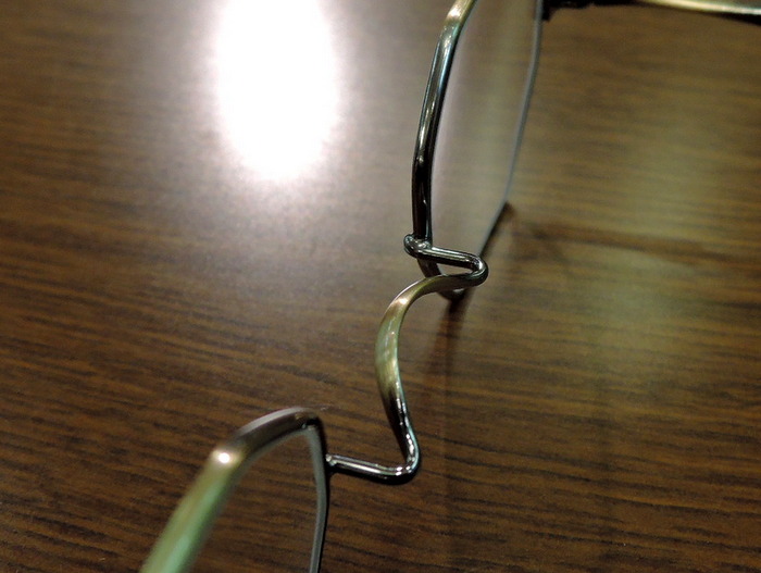 このメガネは一山式といって一つの金属でできています。