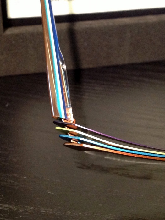 金属を鮮やかなカラーリングで重ね合わせて・・・扇のようにずらして魅せる