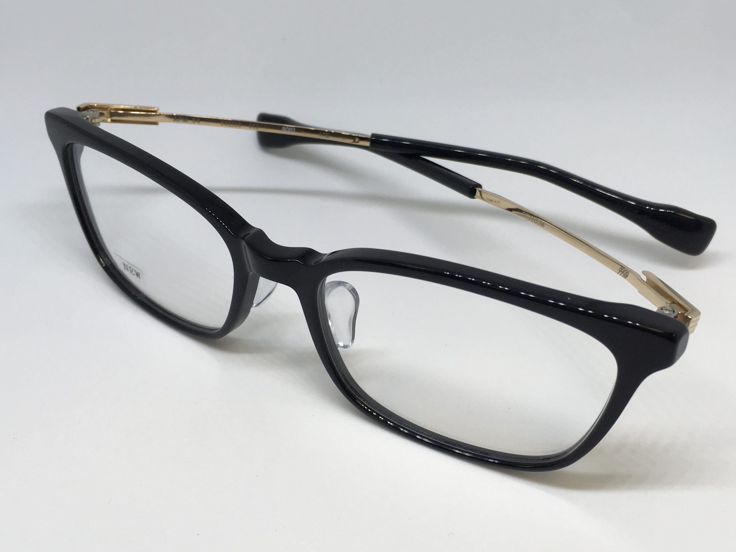 黒ブチってメガネ生活の中で持っておきたい定番カラーでもあるのですが色のせいか?形も主張しすぎるのを嫌う方もいますよね。フォーナインズなら掛け初めには最適ですね
