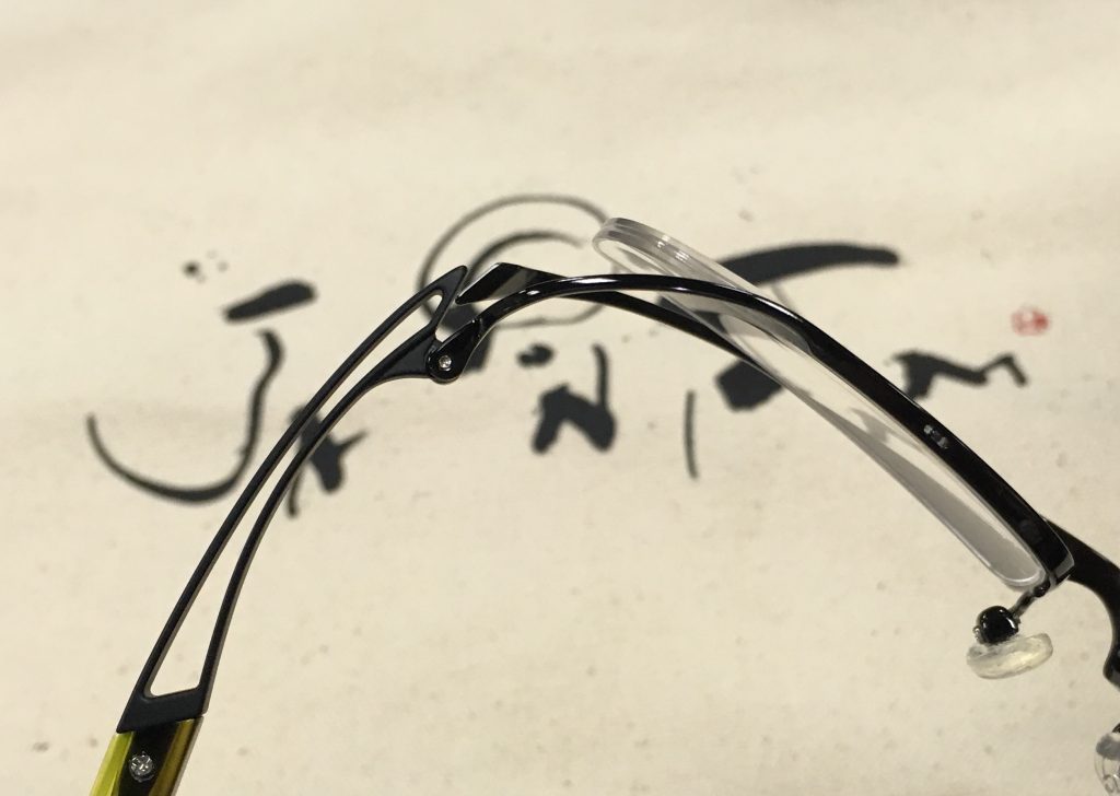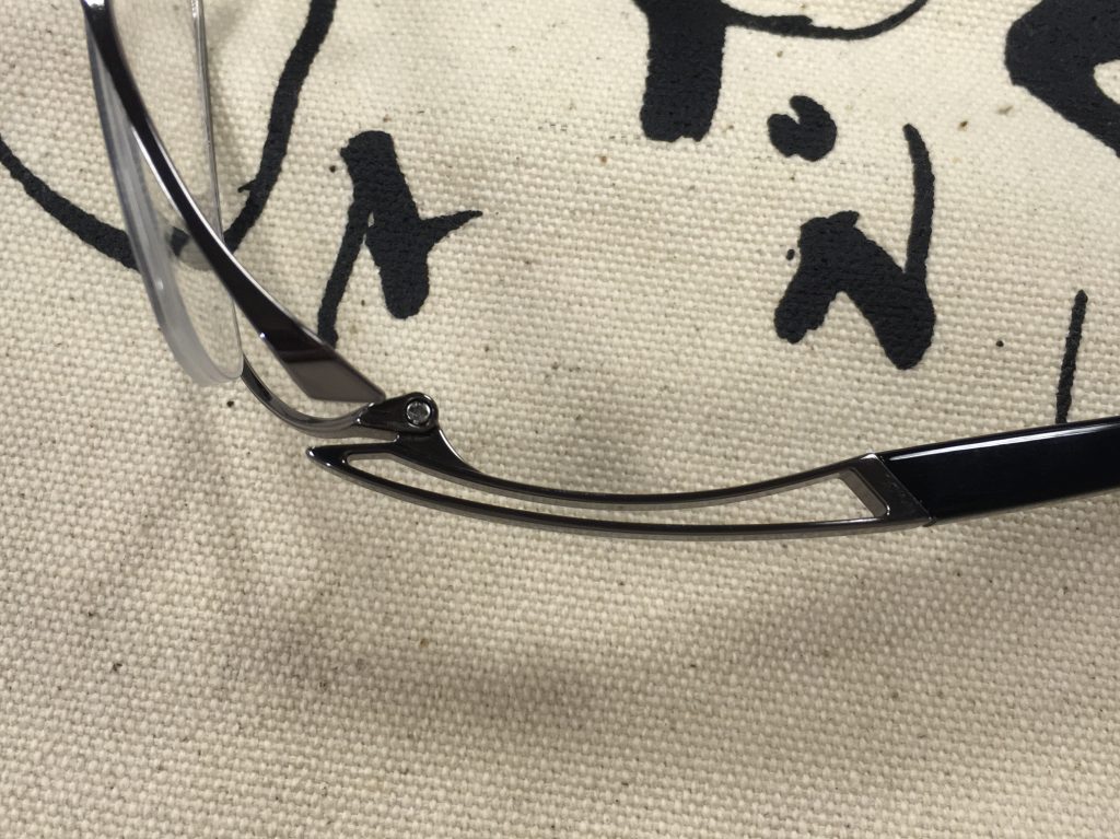 テンプルは上部から見るとくり抜かれていて軽量化