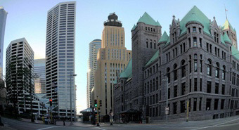 両面非球面設計のレンズ「A–ZONE」で見る視界のイメージはこうなります。フチのゆがみが減っていますよね。