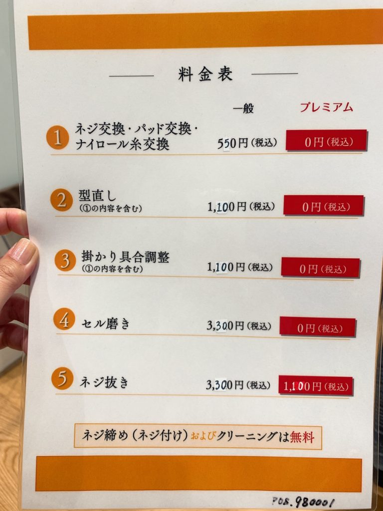 先ほどのメンテナンスメニュー表にもある通り、税込550円にて対応しておりますが、メガネの形状や素材によって交換するパッドもさまざまです。