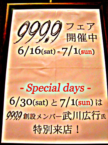 おかげさまで、大変御好評をいただいております「999.9フェア」。16日から開催しておりますが、最終日まで商品をみなさまにお見せできるか心配なくらいです